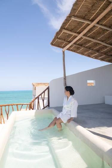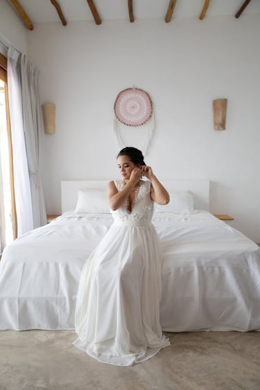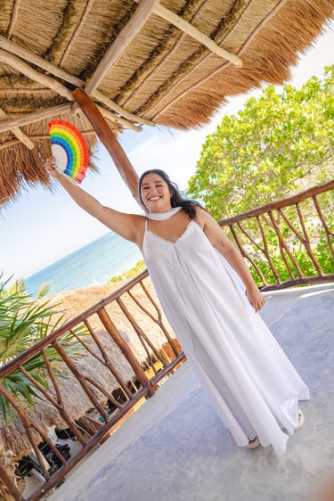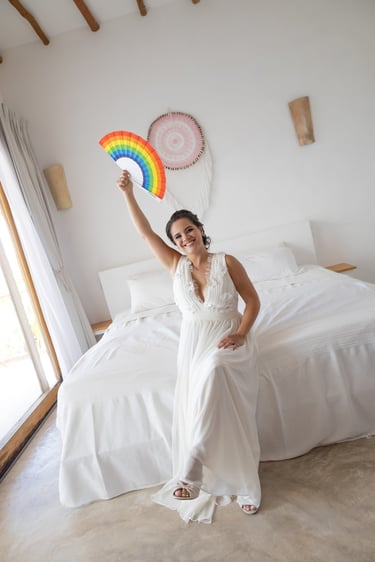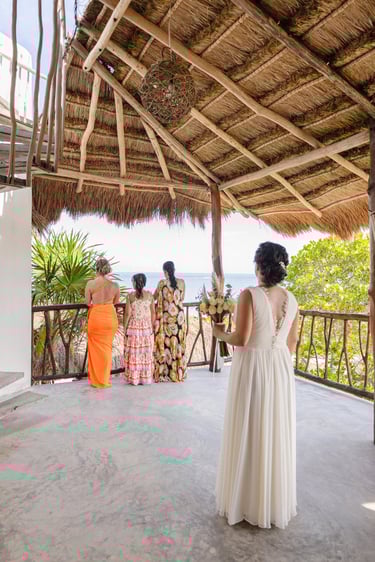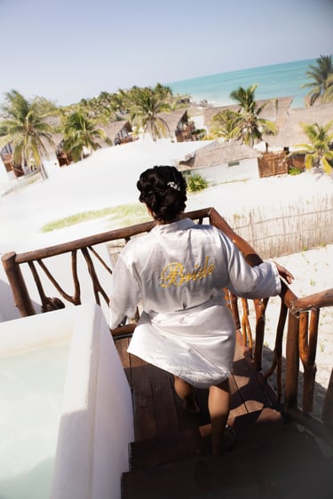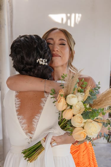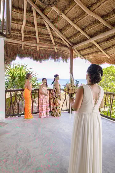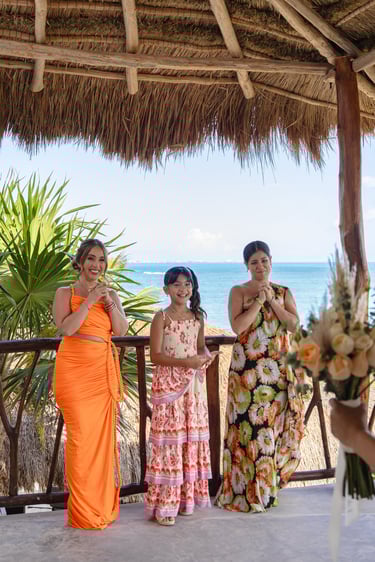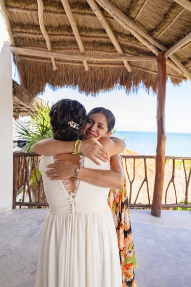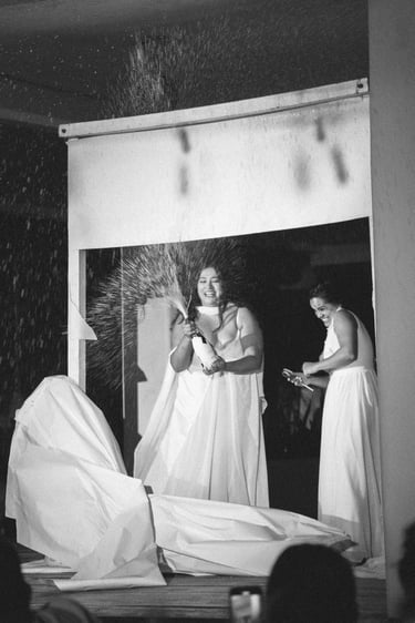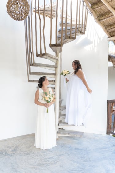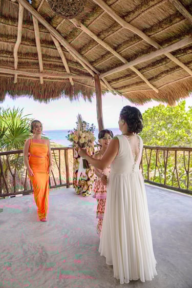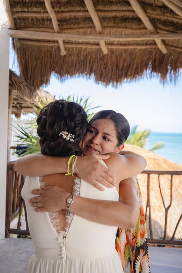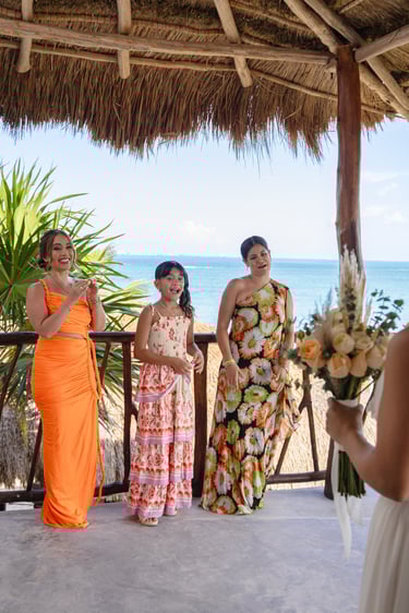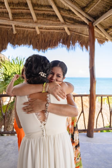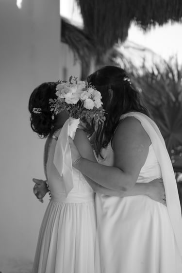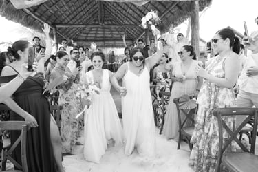Andrea and Ximena celebrated their love in a ceremony defined by originality, emotion, and shared intention. Set barefoot on the shores of Costa Mujeres at Villa Isla Blanca, the day opened with a breathtaking arrival — both brides entering by sea on jet skis — setting the tone for a celebration that was bold, joyful, and unmistakably their own.