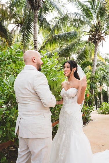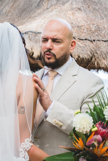 Miriam and Lincoln’s wedding was a pure and heartfelt celebration of love, devotion, and intention. Set in Cancún at Ocean Weddings, their ceremony took place by the sea, where soft light, prayer, and emotion created a deeply spiritual atmosphere shared with family and friends.