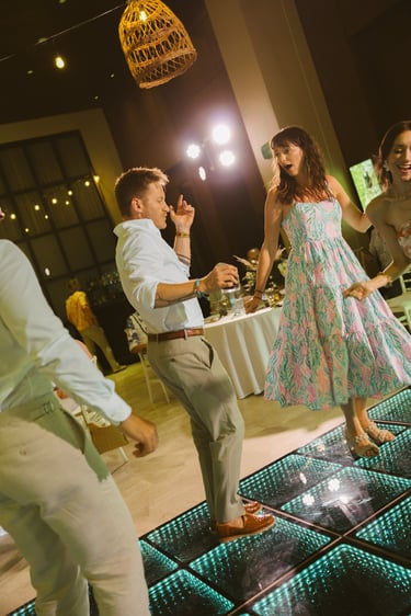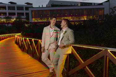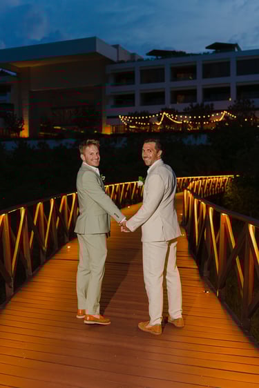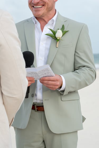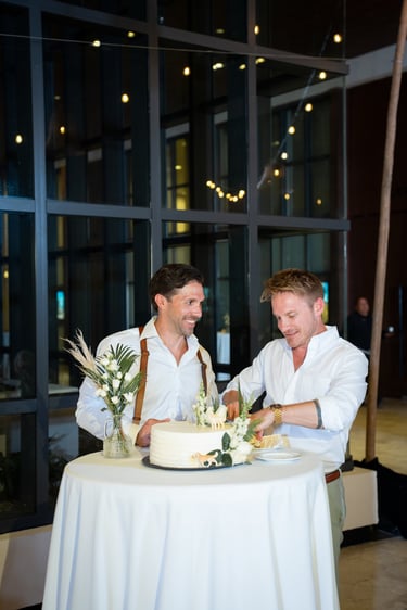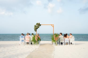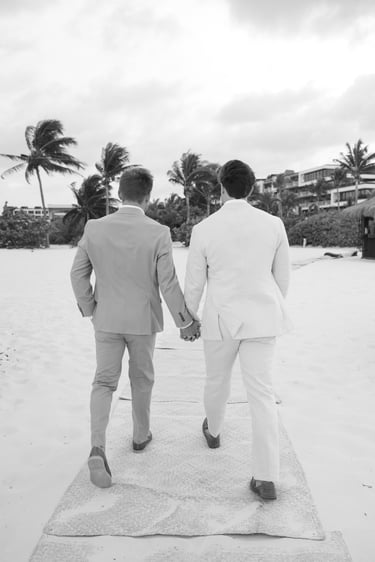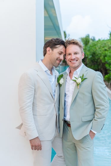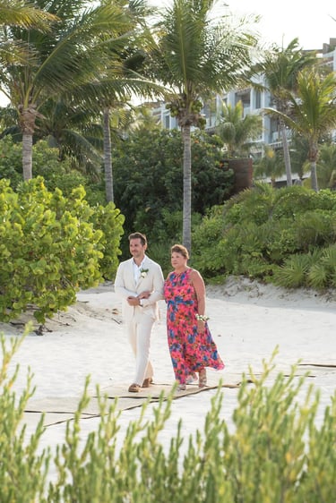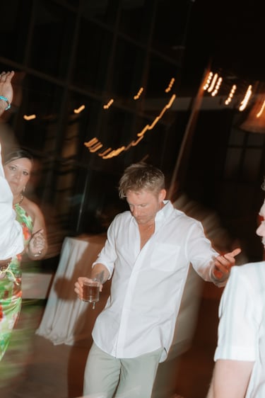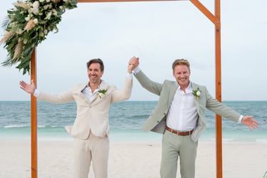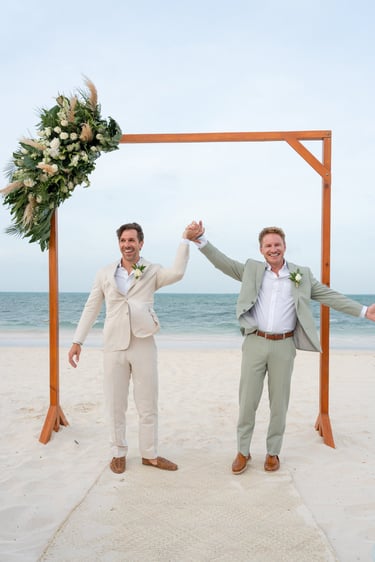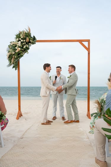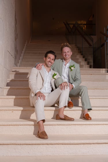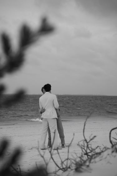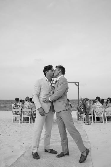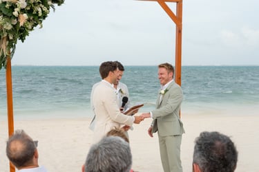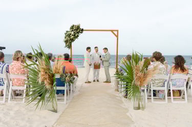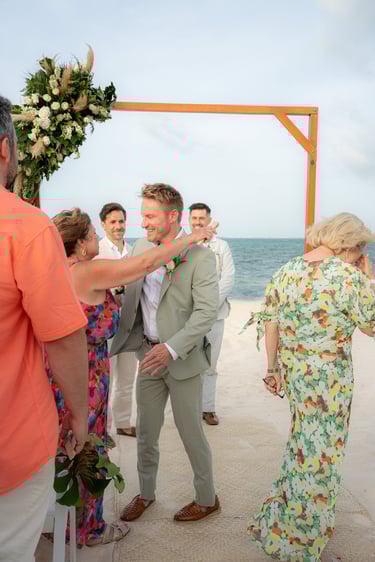 David and Payson chose to celebrate their love in an intimate gathering surrounded by their closest friends, who traveled from the United States to witness their union in Mexico. Their ceremony took place barefoot on the sand at Atelier Playa Mujeres, where the ocean, soft light, and quiet emotion set the tone for a deeply romantic moment.